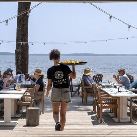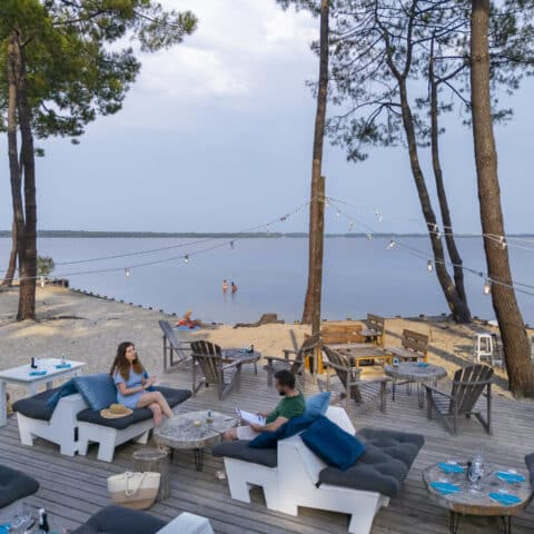 On the lakeside of our Lacanau campsite, the bar-restaurant “Le Sunrise” welcomes you all day long! Come and enjoy a meal with your family, a drink with your partner, a dance with your friends or simply gaze out over the shores of the lake.