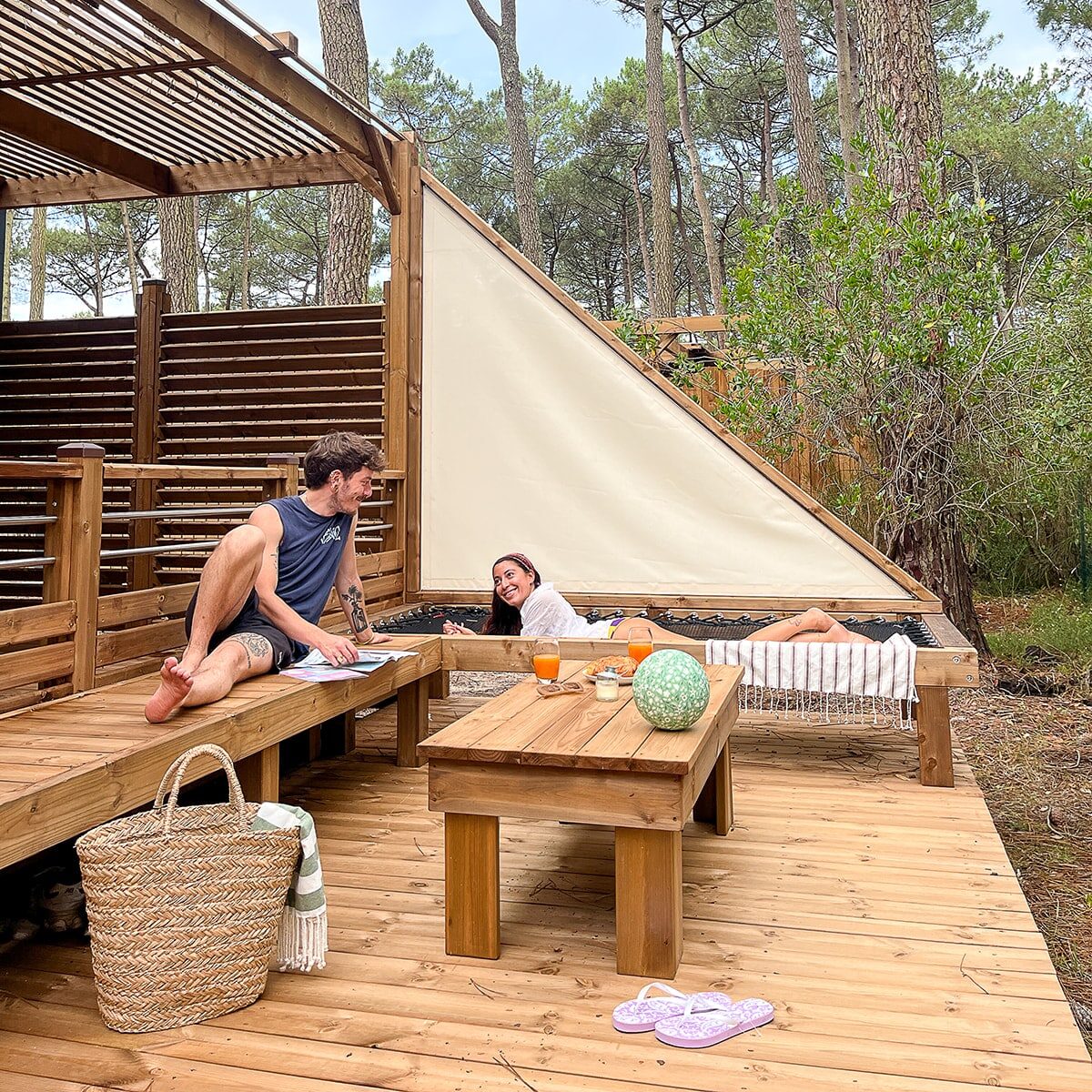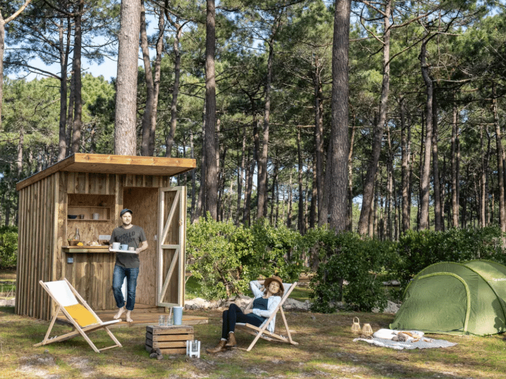 - En pareja, puedes optar por una tienda de campaña o una casa móvil al borde del pinar para una estancia totalmente privada.